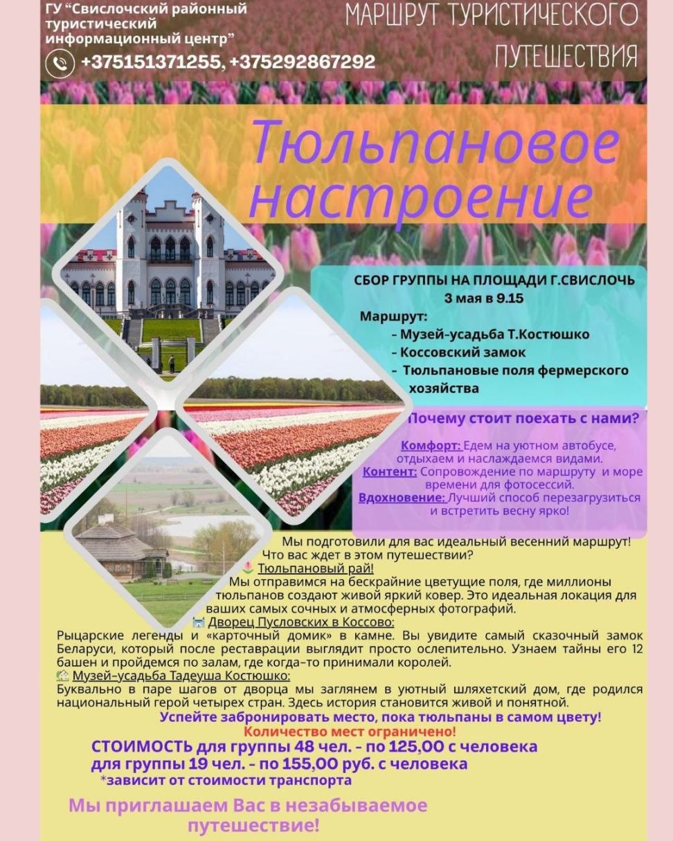 Что надо успеть за весну? Смотрите наши предложения. Тюльпановые поля — обязательны этой весной к посещению. Следующая возможность появится у вас только через год